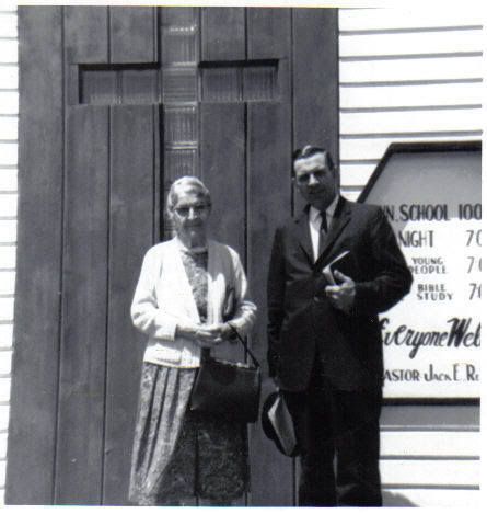 Much can be debated about "bloodlines" but there is something interesting in the Haney history. Clyde Haney's mother, Sofie, was of true pioneer stock. Like the TV series "Big Valley", which was portrayed as in Stockton, Mother Haney [ as she was called ] was from a cattle ranching family that had settled in the California foothills in the 1800's. Their Double Springs ranch is now a California Historical Site with an old cemetary on the property where Clyde Haney and his ancestors are buried. It was this pioneer blood, which ran strong in Clyde Haney, that made him the spiritual pioneer in the Western District that he was. This picture is of CJ Haney and his mother Sofie on a rare preaching trip to a Northern California church. Mother Haney is worthy of a good deal of credit in raising her children under adverse circumstances and leaving a righteous imprint upon them that goes all the way from the "Gold Country" hills to the offices in Hazelwood.