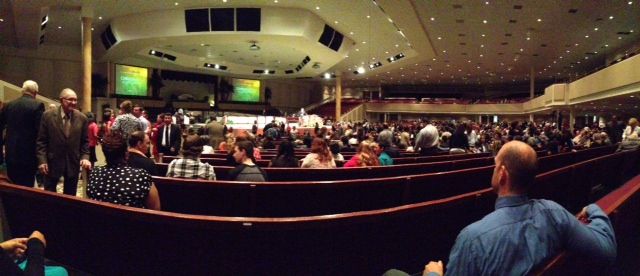 Here is a pic that I took with my phone when I visited CLC on Mother's Day this year. As you can see, the bottom is about 1/2 capacity and the balcony is mostly empty. I was told that Sunday night service is held in a different building as the Sunday morning service is their main event for the week.