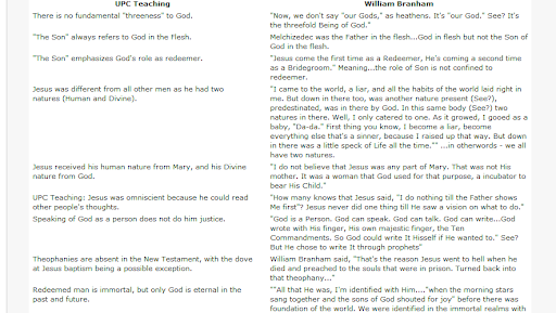 Branham's brand of "Oneness" ... as posited by his own followers @ believethesign.com: