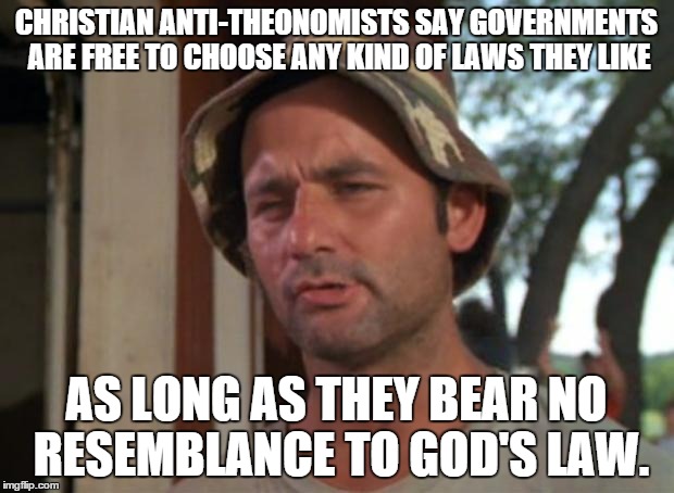 For example, a theonomist would argue that if a woman's husband dies without providing an heir, it would be perfectly fine for her dead husband's brother to take her in and impregnate her. The theonomist would also argue that his current wife should have little say in the matter, "for it is God's holy law that a man do so". It's madness in the name of the Law instead of truth and love in the name of Jesus.