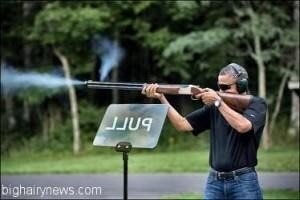 Shouldn't Obama's gun be pointed more upward since he is skeet shooting? The gun looks more level as if he is shooting at a still target.