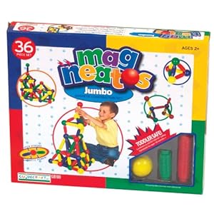 Children can create structures, build on imagination skills and experience the fun and mystery of magnetic construction. These jumbo sized pieces are magnetized and connect together easily. Designed for small hands and huge imaginations.